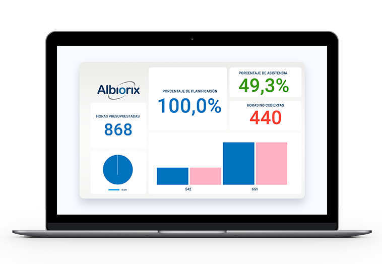 Con ALBIORIX podrás planificar y proyectar turnos, controlar asistencia en tiempo real y calcular con exactitud las horas trabajadas.